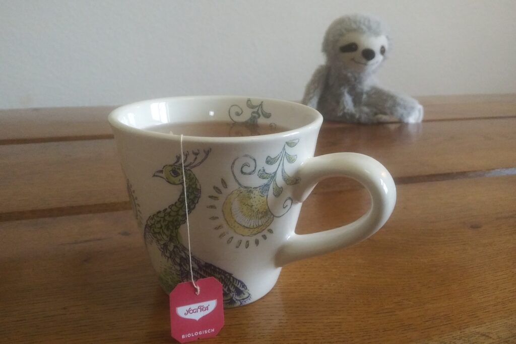 Ich sag’s mal so, es sind noch viele Yogi-Teebeutel übrig 😉 Mit den Tee- und Kaffeepausen hatte ich es nicht so. Auch Yogapausen bildeten eher die Ausnahme, und noch nicht mal das, ich nahm mir einfach keine Zeit dafür. Aber mein Mittwochsyoga ließ ich nicht ausfallen. Und da hatte ich Glück, weil Tina sehr entspannend begann und viele Yogaübungen für die Hüfte integrierte – die linke Hüfte schmerzte nämlich ein wenig vom vielen Sitzen.